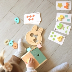 - drveni sorter oblika, brojke s karticama, kocke, igra za provlačenje u obliku zeca