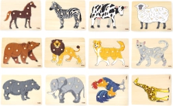 - 12 ploča s slikama životinja kao što su mačka, pas, konj, slon i druge.