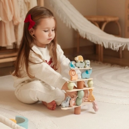 Igračka nudi tri razine težine prilagođene dobi djeteta i idealna je za djecu od 18 mjeseci. Igrajući se, djeca poboljšavaju ravnotežu, razvijaju sposobnost preciznog manevriranja i grade impresivne kule s postojećim životinjama.