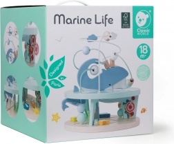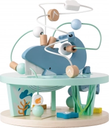 Drveni labirint Morski svijet je izvrsna sensorna igračka, koja razvija finu motoriku i koordinaciju ruka-oko. Pokretni dijelovi i boje privlače svako dijete, koje može premještati kuglice po zakrivljenim žicama i trenirati preciznost pokreta. Ova igračka ne samo da zabavlja, već također pomaže u razvoju rješavanja problema i vještina.