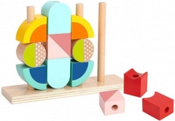 Glatki drveni elementi u pastelnim bojama ugodni su na dodir i sigurni za male ruke. Idealno od 2 godine.