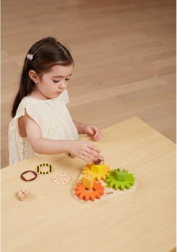 Drveni motorički sortirnik sa zupčanicima brenda Viga idealna je igračka za djecu koja spaja zabavu i učenje. Siguran dizajn bez oštrih rubova i šareni izgled potiču razvoj motoričkih vještina i strpljenja kod djece.