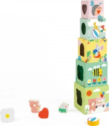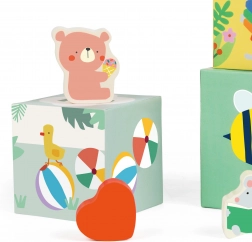 Ovaj set kocaka s temom šume predstavlja raznolike elemente poput biljaka, životinja i kukaca koje djeca otkrivaju na različitim stranama kocaka. Kocke se mogu slagati u visoku kulu ili koristiti za razvrstavanje oblika, što razvija dječju motoriku i logičko razmišljanje.