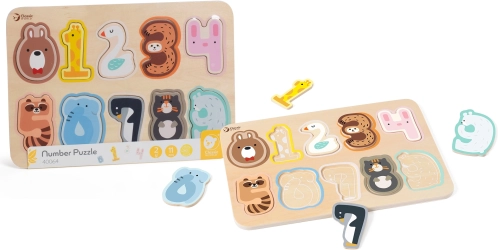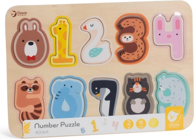 Drvena puzzle za učenje brojeva brenda Classic World idealan je izbor za djecu od dvije godine. Pomaže razvijati koordinaciju oka i ruke te uči djecu brojevima i oblicima životinja kroz zabavu i interakciju.