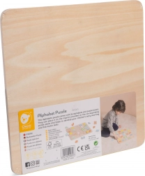 Slagalica je izrađena od prirodnog drva, a korištene boje su netoksične.