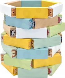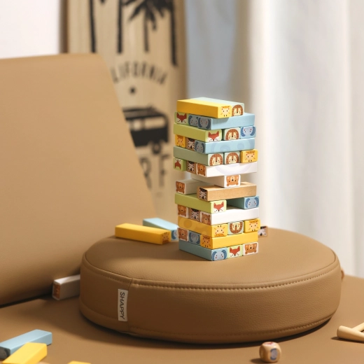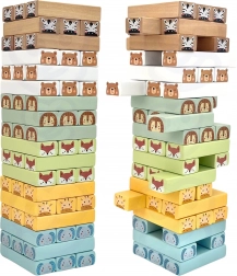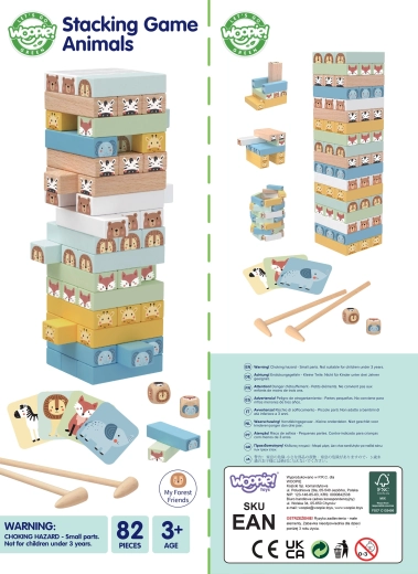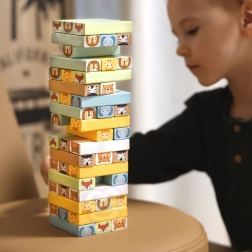 Drvena igra Drhtava kula brenda WOOPRIE odličan je izbor za razvoj motorike vaše djece i zabavu! Set sadrži 82 dijela od izdržljivog drva u pastelnim bojama s naljepnicama životinja. Sjajno potiče strateško razmišljanje i koncentraciju.