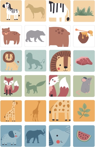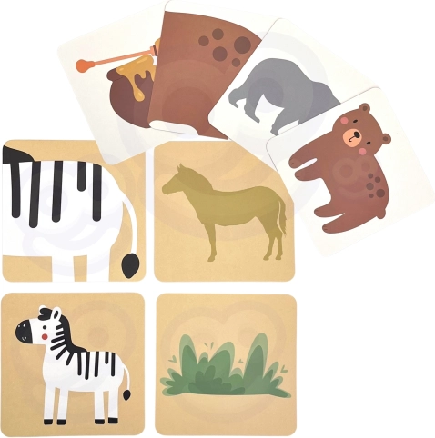 - Igra s kartama: igrači moraju pridružiti životinje na kartama odgovarajućim slikama ili sjenama.