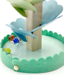 Svaki pad kuglice na šareni “list” stvara nježan zvuk koji podsjeća na cimbal. Djeca tako povezuju vizualne podražaje s glazbenima i razvijaju osjetilnu percepciju.
