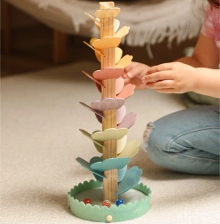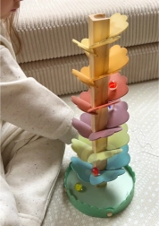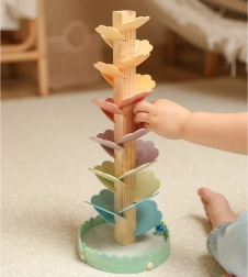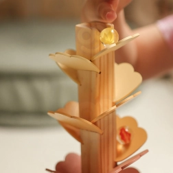 Drveno glazbeno drvce, poznato kao kugličasto stablo, pretvara svako spuštanje kuglice u umirujući koncert. Raznobojni “listići” tvore stazu niz koju kuglice putuju prema dolje i pri svakom dodiru stvaraju ugodne, nježne tonove. Igračka potiče koncentraciju, strpljenje i prirodnu znatiželju.