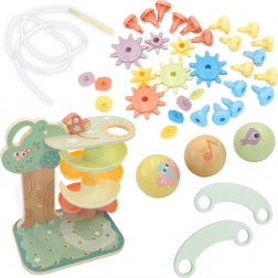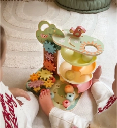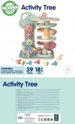 Aktivno Stablo WOOPIE GREEN pažljivo je osmišljen edukativni set, koji kombinira čak četiri različite aktivnosti, potičući svestrani razvoj djeteta već od 18 mjeseci. Sadrži šarenu tobogansku kulu, senzoričke zupčanike, udaranje štapića i kreativno navlačenje – sve u prekrasnoj, pastelnim izvedbi i osigurano sigurnim, izdržljivim materijalima.
