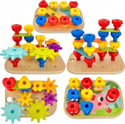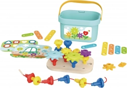 S ovom kutijom djeca se mogu radovati 12 različitim aktivnostima u jednom kompaktnom paketu - od slaganja uzoraka, učenja oblika i boja, do izgradnje 3D konstrukcija. Svi dijelovi se lako mogu pohraniti unutra, što olakšava kompaktni prijenos i organizaciju. Ovaj proizvod je izrađen od prirodnog drva i ima zaobljene rubove za maksimalnu sigurnost.