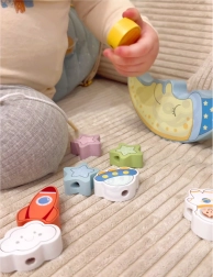 Drugi dio nudi kreativnu igru nizanja: blokovi se mogu nizati pomoću drvene igle i vezice, što pomaže u razvoju finih motoričkih vještina i koordinacije ruku i očiju.