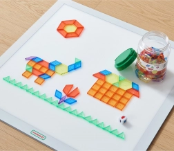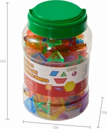 Uz ovaj bogati set od 140 prozirnih dijelova djeca slažu slike, uzorke i mozaike, uče geometriju i otkrivaju simetriju. Dostupno je 6 oblika (šesterokut, kvadrat, trapez, trokut, romb i paralelogram) u 6 živih boja koje potiču neograničenu kreativnost.