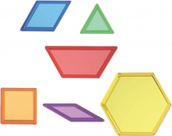 Upoznajte šesterokute, kvadrate, trapeze, trokute, rombove i paralelograme u plavoj, crvenoj, zelenoj, žutoj, ljubičastoj i narančastoj boji. Idealno za razvrstavanje, slaganje i vizualnu geometriju.
