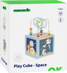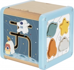 Otkrijte multifunkcionalnu drvenu aktivnu kocku s temom svemira koja potiče prirodan razvoj djeteta. Djeca će obožavati pomicanje perlica u labirintu, okretanje slikovnih blokova s raketom, planetom i astronautom, razvrstavanje oblika i okretanje šarenih zupčanika. Svaka strana nudi drugu aktivnost za razvoj fine motorike, koordinacije oko–ruka i znatiželje.