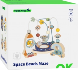 Otkrivite drveni motorički labirint s raketom marke TOOKY TOY – zabavno pomagalo koje potiče finu motoriku, koordinaciju oko–ruka i logičko razmišljanje. Šarene perlice sa svemirskim motivom glatko klize po metalnim žicama, igračka je izrađena od kvalitetnog drva i lakirana netoksičnim bojama. Prikladno od 24 mjeseca.