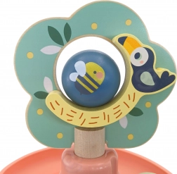 Drvena staza za kuglice WOOPIE GREEN u prirodnom i pastelnom izdanju donosi djeci omiljenu igru uzroka i posljedice: ubaci kuglicu na vrh i promatraj kako se okreće kroz katove sve do baze. Stabilna konstrukcija, glatki rubovi i kuglice s tiskom životinjica osiguravaju sigurnu i privlačnu igru.
