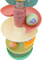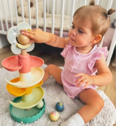 Zahvaljujući 6 lako spojivih dijelova dijete može samo složiti stazu, čime razvija logičko razmišljanje, prostornu maštu i strpljenje. Igra također potiče vizualno praćenje i finu motoriku ruku dok djeca hvataju, umeću i ponovno ispuštaju kuglice.
