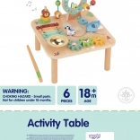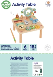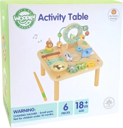 Multifunkcionalni drveni stolić 5u1 brenda WOOPIE GREEN spaja zabavu i učenje u jednom. Nudi ksilofon, labirint s kuglicama, zupčanike, razvrstavanje oblika i građevne/provlačne elemente. Podržava finu motoriku, koordinaciju oko–ruka, logičko razmišljanje i osjetilnu percepciju. Izrađen od prirodnog drva u pastelnim bojama i s sigurnim premazima, idealan za djecu od 18 mjeseci.