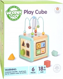 Drvena aktivna kocka WOOPIE GREEN u nježnim pastelnim bojama spaja zabavu i učenje u jednom. Nudi labirint s perlicama, sorter oblika, rotirajuće blokove sa životinjama, zupčanike i klizne elemente za razvoj fine motorike, logike i koordinacije. Sigurna izrada s glatkim rubovima i kvalitetnim drvom idealan je izbor za djecu od 18 mjeseci te kao sjajan poklon.