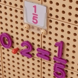 Ovaj sveobuhvatan set osmišljen je za razigrano i pregledno učenje osnovne matematike. Ljubičasti elementi privlače djecu na prvi pogled, a zahvaljujući većim dimenzijama njima se lako rukuje. Savršeno odgovara zidnim i stolnim STEM panelima MASTERKIDZ te pomaže graditi sigurnost u radu s brojkama i jednostavnim jednadžbama.