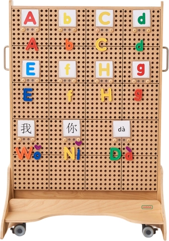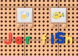 Slova s klipićima lako se umeću u perforirane panele. Taktilni i vizualni poticaji podupiru pamćenje, fonematiku i pravilnu orijentaciju slova.