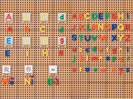 Ukupno 104 čitljiva slova omogućuju istovremeni rad pojedinaca i manjih grupa. Djeca uče prepoznavati oblike slova te slagati jednostavne i duže riječi.