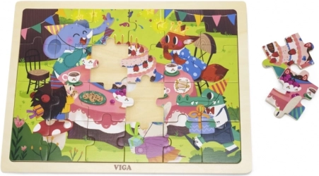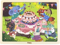 Otkrijte kvalitetnu drvenu slagalicu VIGA s motivom rođendanske proslave. Puzzle s 24 dijela smještene su na drvenoj podlozi s predloškom, a svaki je dio označen brojevima od 1 do 24, što djeci olakšava slaganje i potiče učenje brojeva. Prikladno od 24 mjeseca, oslikano netoksičnim bojama.
