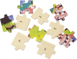 Drvene puzzle VIGA s veselim životinjama oko rođendanske torte idealan su izbor za prvu veću slagalicu. Podloga s predloškom pruža stabilnu osnovu i pomaže djeci lakše pronaći odgovarajuće dijelove. Numeriranje dijelova 1–24 dodatno donosi razigran oblik upoznavanja s brojevima i podržava postupno slaganje bez frustracije.
