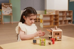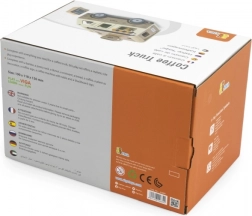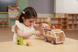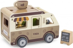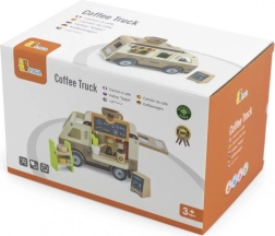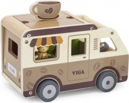 Dječji drveni kafić-truck VIGA promišljena je igračka za male ljubitelje uloga. U kompletu su figurica bariste, stalak s poslasticama, grickalice i oprema od kave do ploče s jelovnikom. Zahvaljujući podiznom krovu, prozoru za posluživanje i otvarajućem prtljažniku igra teče glatko i oponaša stvarno posluživanje kupaca.