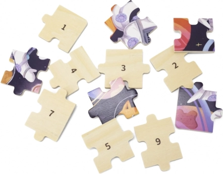 Drvene puzzle VIGA Svemirska avantura oduševljavaju živim bojama i jasno numeriranim dijelovima koji djeci pomažu slagati korak po korak bez nepotrebne frustracije. Čvrsta drvena podloga služi kao okvir i kao vizualni predložak – dijete lako vidi gdje koji dio pripada.