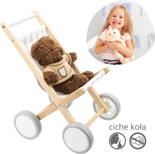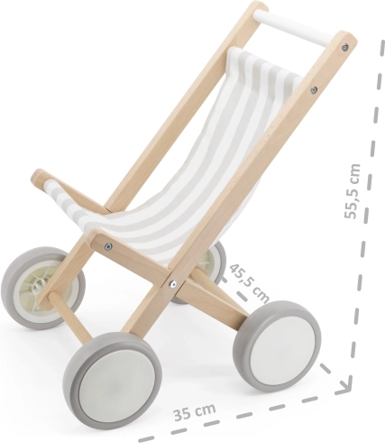 Kolica su kompatibilna s lutkama i plišancima do 38 cm, pa će lako postati omiljen dodatak dječjoj sobi. Jednostavan prirodni izgled lijepo se uklapa u moderan i tradicionalan interijer.