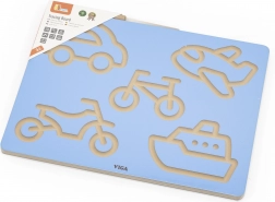 Otkrijte zabavan put do prvih poteza i slova. Drvena ploča VIGA s motivima vozila vodi djecu prema protočnim pokretima ruke, ispravnom pritisku i smjeru poteza. Trening se odvija prirodno kroz igru – ponavljano praćenje utora potiče koncentraciju i sigurnost u ruci.