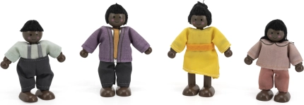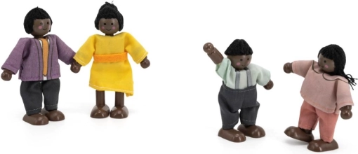 Obiteljski set idealan je za razvoj mašte, fine motorike i socijalnih vještina. Zahvaljujući pokretnim udovima lutkice se lako posjedaju, uspravljaju i poziraju – djeca tako prirodno stvaraju vlastite priče. Kvalitetno drvo i mekana tekstilna odjeća daju igračkama ugodan izgled i dodir.