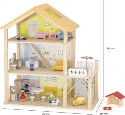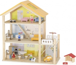 Ova pomno osmišljena kućica nudi kuhinju s dnevnim boravkom, kupaonicu, spavaću sobu, dječju sobu, balkon s ležaljkom i suncobranom te također garažu s autićem. U kompletu je raznolik set namještaja, 4 figurice i psić – sve spremno za trenutačnu igru.