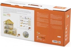 Zahvaljujući čvrstoj drvenoj konstrukciji i glatkim rubovima igra je sigurna i ugodna. Čak 32 elementa razvijaju maštu, finu motoriku i socijalne vještine. Idealno za lutke do 10 cm.