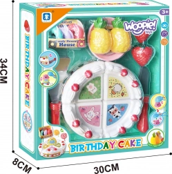 Presladak rođendanski set brenda Woopie pretvara svaku dječju čajanku u nezaboravnu proslavu. Lijepo ukrašena plastična torta za rezanje lako se dijeli na porcije, a uz dodatke kao što su nožić, špatula i tanjurić djeca mogu isprobati posluživanje kao pravi domaćini.