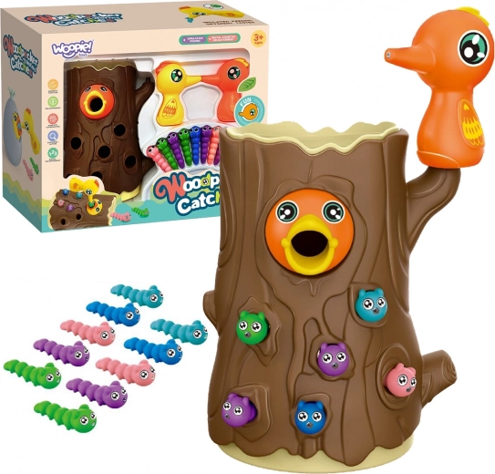 Djetlić s magnetskim kljunom hvata crviće skrivene u rupicama – djeca pritom vježbaju finu motoriku i koordinaciju pokreta.