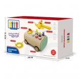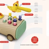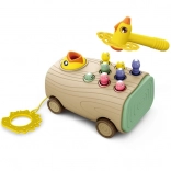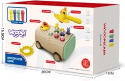 Otkrijte zabavnu i svestranu igračku 3u1 brenda WOOPIE, koja potiče finu motoriku, koordinaciju oko–ruka i ravnotežu. Djeca će uživati u vučnim kolicima s tihim kotačima, igri zabijanja sigurnim čekićem i magnetskoj igri lovljenja crvića sa simpatičnim “djetlićem” – drvodjelcem. Jednostavna pravila, kvalitetna izrada i puno zabave za male istraživače od 18 mjeseci.