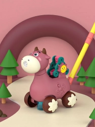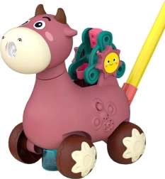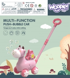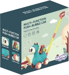Hodalica kravica marke WOOPIE idealan je pomoćnik pri učenju hodanja. Djeca mogu gurati svoju omiljenu kravicu koja tijekom vožnje ispušta mjehuriće direktno iz usta. Dovoljno je zavrnuti bočicu s otopinom (u pakiranju su 2 bočice) i zabava može početi. Za atmosferu se brinu ugodne melodije koje se mogu uključiti i isključiti gumbom.