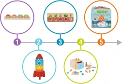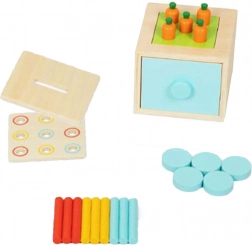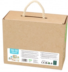 Drveni set namijenjen poticanju kognitivnog razvoja i fine motorike za djecu od 16 mjeseci.