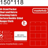 Tekstilni zidni organizator s džepovima brenda Masterkidz s tri reda džepova za knjige ili slike. Idealan za korištenje u školama za objašnjavanje složenih tema ili kao zanimljiv element za izlaganje vrijednih naslova, primjerice u knjižnici.