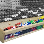 Drvena spremna kutija za znanstveno-kreativne ploče Masterkidz STEM idealna je za pohranu pribora kako bi uvijek bio pri ruci. Kutija je namijenjena čuvanju potrebnih dodataka poput vijaka, kvačica i konopaca, što olakšava organizaciju i pospremanje.