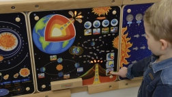 Zahvaljujući pokretnim elementima i svjetlosnim efektima djeca lako uče o vanjskoj i unutarnjoj strukturi Zemlje.