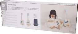 Ukulele je izrađeno od izdržljivih materijala i ukrašeno netoksičnim bojama. Odlično služi za slobodnu igru, glazbeni odgoj i zajedničke trenutke s obitelji – bilo kod kuće ili na otvorenom. To je zabavan način da se u djeci probudi kreativnost i osjećaj za glazbu.