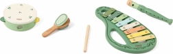 Set sadrži ksilofon, tamburin, blokflautu (rekorder), kastanjetu i batić – idealna kombinacija za otkrivanje ritma i tonova već od 18 mjeseci.