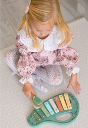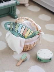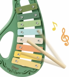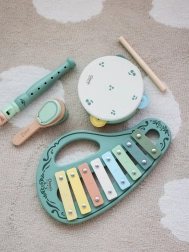 Instrumenti su izrađeni od lakiranog drva i bojani netoksičnim bojama. Ergonomski oblici lako pristaju malim ručicama te potiču finu motoriku, osjećaj za ritam i glazbeno izražavanje. Idealno za zajedničku obiteljsku zabavu i prve glazbene lekcije kod kuće.