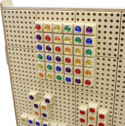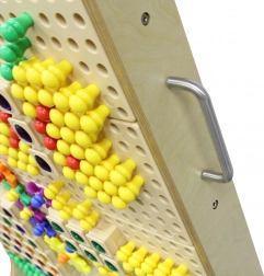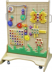 Ova drvena STEM ploča djeci nudi bogat prostor za stvaranje uzoraka, izgradnju staza za kuglice, zupčastih prijenosa i drugih konstrukcija. Obostrano izvedenje potiče skupnu igru i suradnju, dok čvrsta konstrukcija od kvalitetnog drva osigurava dug vijek trajanja.