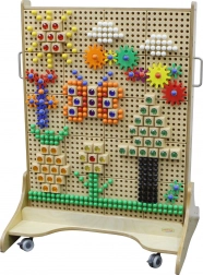 Zahvaljujući mobilnoj bazi na kotačima ploču lako premjestite tamo gdje je trenutačno potrebna. U potpunosti je kompatibilna sa širokim spektrom MASTERKIDZ dodataka za STEM ploče (kolčići, “kristali”, vezice, vijci, zupčanici, cijevi, slova i brojevi itd.), pa podučavanje i igru možete postupno širiti.