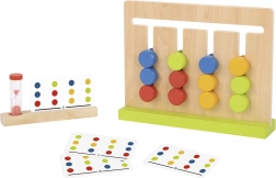 Ova edukativna igra donosi djeci radost otkrivanja i vježba koncentraciju. Zadatak je prema odabranoj kartici premještati obojene diskove u ispravan redoslijed i to uspjeti u vremenu koje mjeri pješčani sat. Drvena izrada ugodna je na dodir, a površina je obložena netoksičnim bojama.